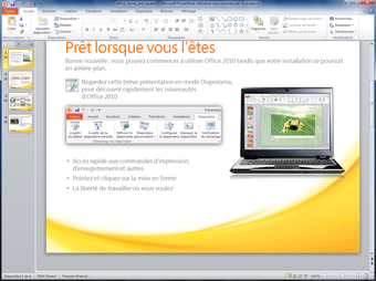 Microsoft PowerPoint 2010 offre maintenant la possibilité d'éditer un fichier vidéo dans une présentation, avec même quelques fonctionnalités avancées, une nouveauté particulièrement bienvenue. Enfin, notons l'arrivée d'un petit nouveau dans la suite Office. Microsoft OneNote 2010, un bloc-note virtuel, permet de partager en ligne des images, des vidéos ou des textes trouvés sur le Web avec ses amis connectés.